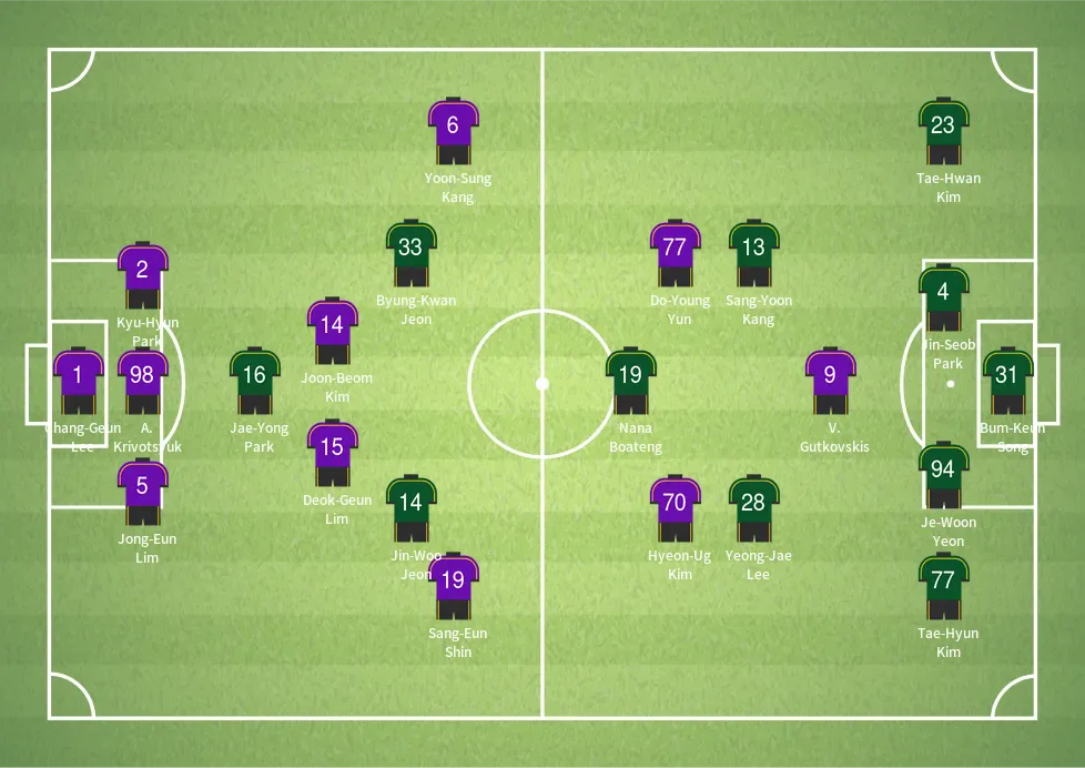- Kim Hyeon-Ug (#70) โ A pacey winger who can exploit wide spaces and deliver dangerous balls.