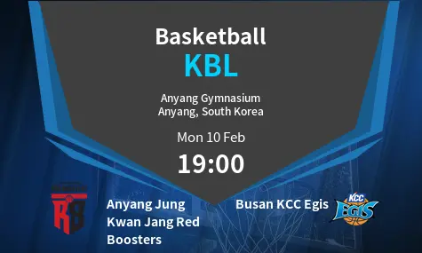 Anyang Jung Kwan Jang Red Boosters and Busan KCC Egis face off in a crucial KBL (Korean Basketball League) matchup.