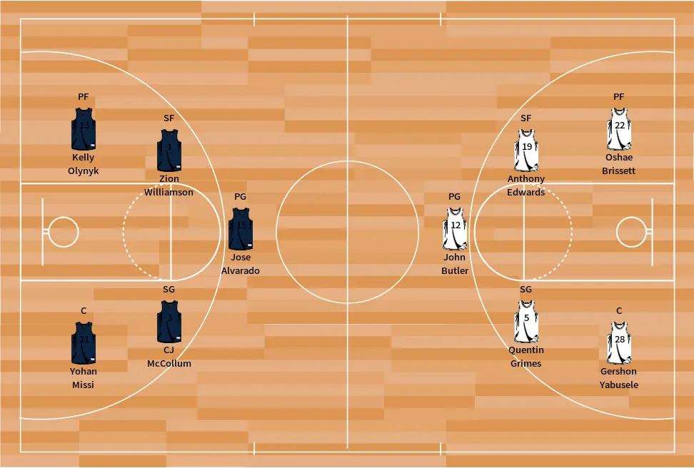 - Zion Williamson โ A dominant force in the paint, capable of scoring efficiently and grabbing rebounds.