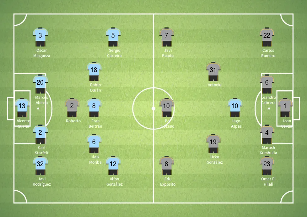 - Pol Lozano โ Supports attack with dynamic midfield movement.