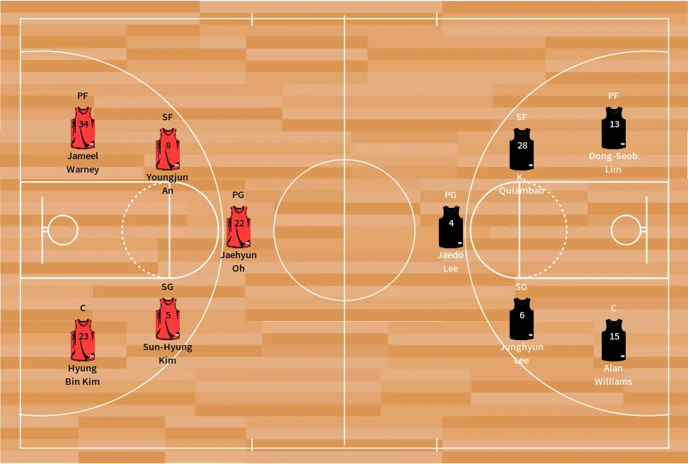 - Kim Sun-Hyung (๊น์ ํ) โ Veteran guard known for his court vision and leadership, contributing 9.2 points and 2.2 assists.