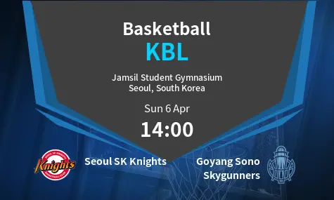 An exciting clash is set to unfold between the Seoul SK Knights and the Goyang Sono Skygunners on April 6, 2025 (Sunday), at 2:00 PM KST. The matchup will take place at the Jamsil Studentsโ Gymnasium in Seoul, where the Knights will enjoy the advantage of playing in front of their home crowd. Both teams enter the contest with high expectations, featuring strong offensive talents and tactical depth, making this a must-watch game for KBL fans.