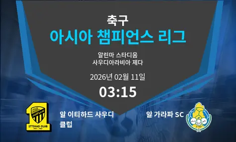 2026년 2월 11일 알 인마 스타디움에서 열리는 알 이티하드 사우디 클럽과 알 가라파 SC의 경기는 양 팀이 명성을 걸고 맞붙는 중요한 대결이 될 것입니다. 경기는 오전 03:15에 시작됩니다.