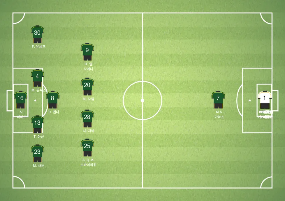 - 모하마드 칼리드 샴스는 중원을 장악하며, 경기의 흐름을 컨트롤하는 중요한 역할을 하고 있습니다.