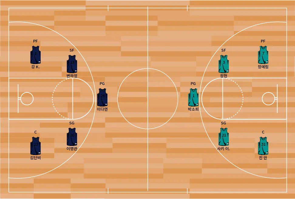 - 박소영: 팀의 에너지원으로서 빠른 페이스의 공격 전환을 주도합니다.