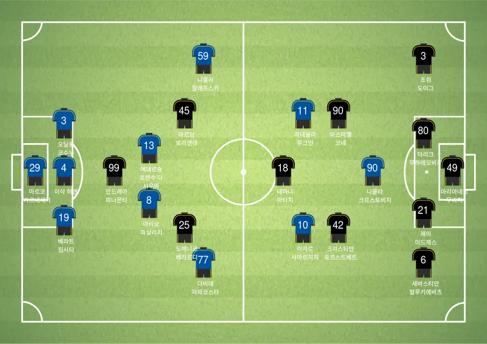 - 다비데 프라테시: 중원에서의 활동량과 공간 침투 능력이 돋보임