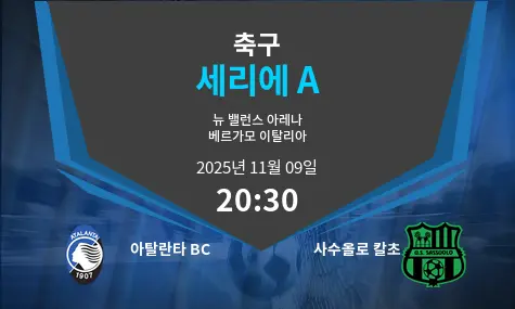 아탈란타 BC는 이탈리아 베르가모의 뉴 밸런스 아레나에서 사수올로 칼초를 상대로 세리에 A 12라운드 경기를 치른다. 아탈란타는 최근 홈 경기에서 안정적인 수비와 빠른 전환 플레이를 기반으로 좋은 흐름을 이어가고 있다. 공격에서는 측면과 중원에서의 유기적인 패스로 상대 수비를 흔들며 득점을 노린다. 반면 사수올로는 올 시즌 원정에서 기복 있는 경기력을 보이고 있으나, 빠른 역습과 세트피스 상황에서의 집중력을 무기로 삼고 있다. 이번 경기는 아탈란타의 공격 주도 속에 사수올로의 역습이 맞서는 구도로 펼쳐질 전망이다.