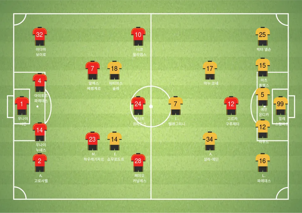 - 엘도르 쇼무로도프: 골 결정력이 뛰어난 스트라이커로, 빌바오 수비를 상대로 중요한 역할을 할 것입니다.