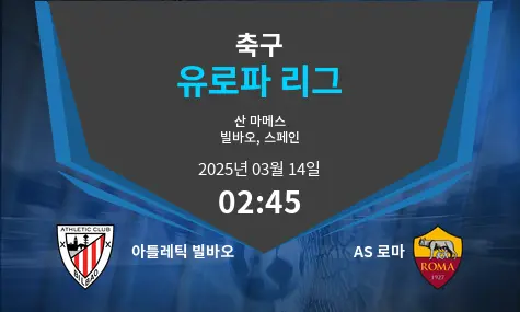 아틀레틱 빌바오와 AS 로마가 2025년 3월 14일 스페인 빌바오의 산 마메스에서 UEFA 유로파 리그에서 맞대결을 펼칩니다. 빌바오는 홈 경기에서 강한 모습을 보이며, 로마는 원정 경기에서도 꾸준한 경기력을 유지하고 있습니다. 두 팀 모두 다음 라운드 진출을 위해 승리가 필요한 상황이며, 치열한 공격 축구가 예상됩니다.