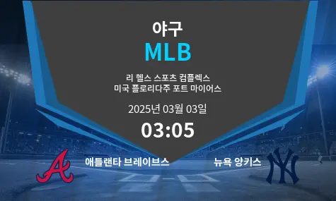 애틀랜타 브레이브스와 뉴욕 양키스가 미국 플로리다주 포트 마이어스의 리 헬스 스포츠 컴플렉스에서 맞붙습니다. 두 팀 모두 강한 타선을 보유하고 있지만, 핵심 선수들의 부상으로 인해 경기의 변수가 많을 것으로 예상됩니다.