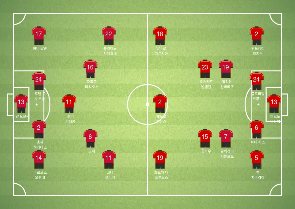 - 아르노 바타야 (GK): 아틀레티코의 공격을 막기 위해 중요한 역할을 맡을 골키퍼
