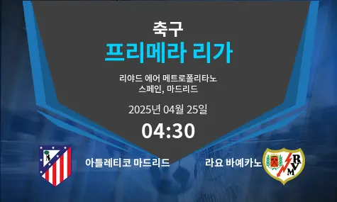 라리가 3위 아틀레티코 마드리드는 2025년 4월 25일 오전 4시 30분(한국시간), 마드리드의 리야드 에어 메트로폴리타노에서 10위 라요 바예카노를 상대합니다. 아틀레티코는 이번 시즌 18승을 기록하며 탄탄한 수비와 함께 리그 3위의 득실차를 기록하고 있습니다. 반면, 라요는 원정 경기에서 흔들리며 24실점을 기록, 승리가 단 5번뿐인 상황입니다.