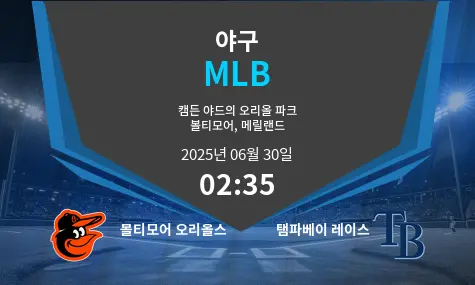 볼티모어 오리올스와 탬파베이 레이스의 맞대결은 미국 메릴랜드주 볼티모어에 위치한 캠든 야드의 오리올 파크에서 열립니다. 경기는 2025년 6월 30일 오전 2시 35분(KST)에 시작될 예정입니다. 양 팀 모두 최근 기복 있는 경기력을 보이고 있으며, 핵심 선수들의 부상으로 전력 운영에 변수가 생긴 상태입니다. 포스트시즌 경쟁이 본격화되는 시점에서, 이번 경기는 양 팀의 전력 깊이와 회복력을 확인할 수 있는 중요한 무대가 될 것입니다.