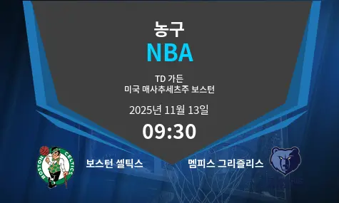 보스턴 셀틱스가 2025년 11월 13일 TD 가든에서 멤피스 그리즐리스를 상대합니다. 양 팀 모두 시즌 초반에 기복을 보이며 패배를 경험했지만, 셀틱스는 5승 6패로 조금 더 나은 성적을 기록 중입니다. 반면, 그리즐리스는 4승 7패로 뒤처져 있습니다. 보스턴은 전반적으로 더 견고한 수비력을 자랑하며, 멤피스는 턴오버 관리에 어려움을 겪고 있습니다. 이번 경기는 두 팀 모두에게 시즌의 흐름을 바꿀 수 있는 중요한 맞대결입니다.