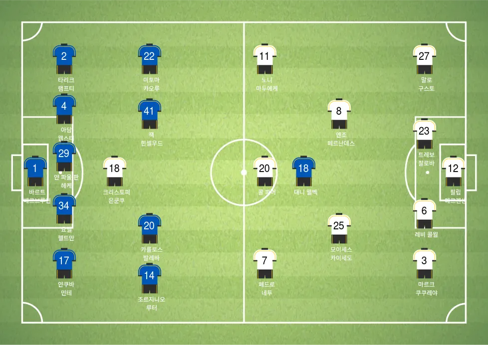 - 루이스 덩크 (센터백, 주장) – 팀의 수비 리더로서 첼시의 강력한 공격을 막아내는 핵심 역할.