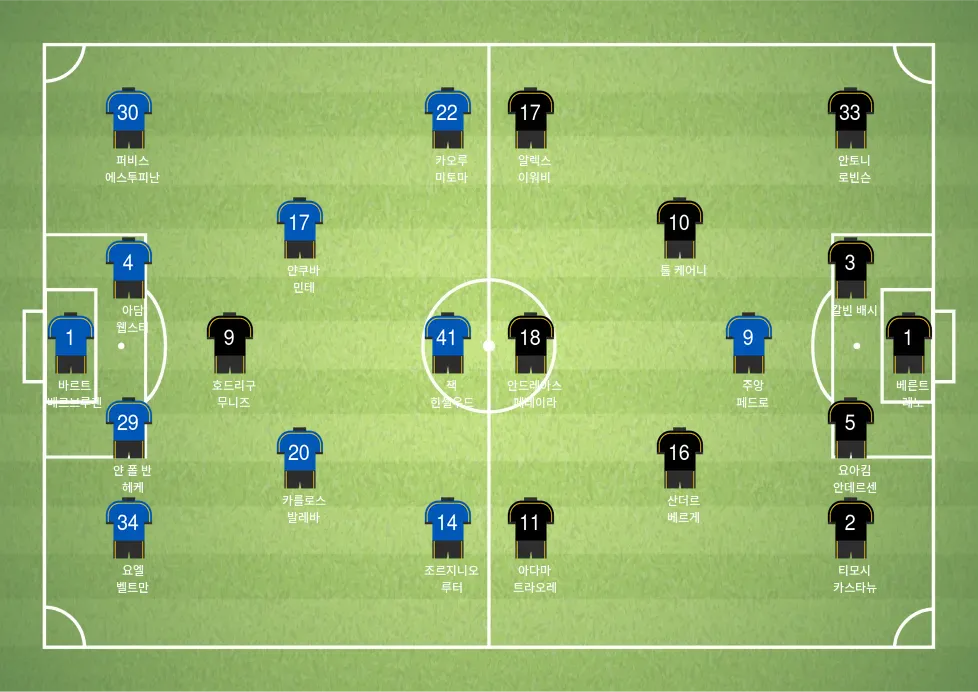- 주앙 페드로 – 팀의 최전방에서 득점력을 발휘하는 핵심 선수이며, 경기 내내 상대 수비를 위협한다.