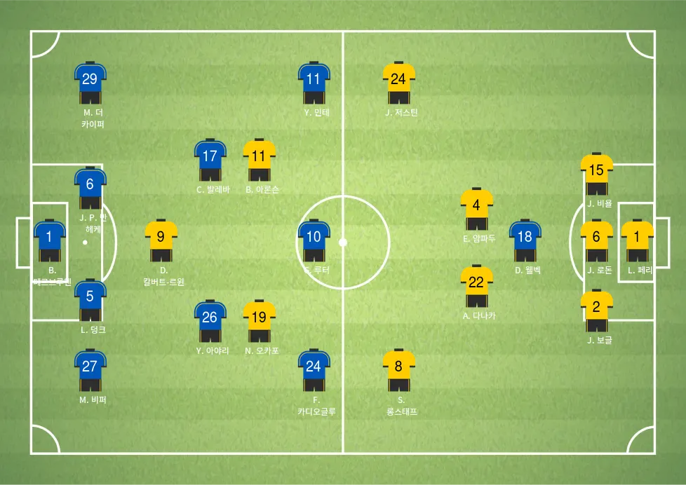 - S. 롱스태프: 미드필드에서 템포를 조절하며 수비 커버와 공격 추진력을 모두 제공합니다.