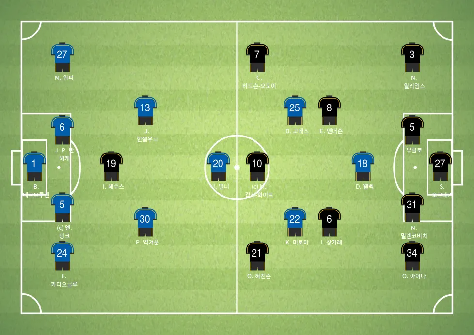 - 엑거스 건: 수비의 중추적인 역할을 하며 경기 내내 안정적인 수비력을 발휘합니다.