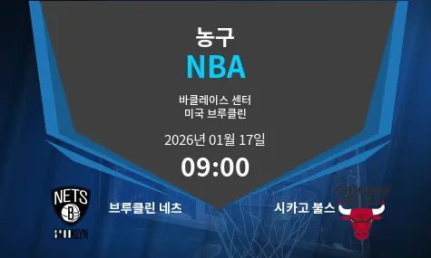 브루클린 네츠와 시카고 불스의 매치업 분석을 살펴보겠습니다. 이번 경기는 2026년 1월 17일 바클레이스 센터에서 열릴 예정이며, 경기 시작 시간은 오전 9시입니다. 두 팀 모두 경기의 승리를 위해 철저히 준비하고 있습니다.