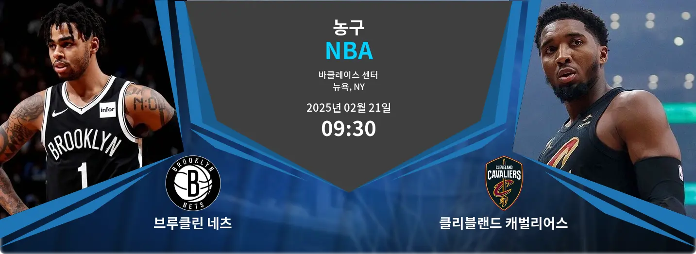브루클린 네츠와 클리블랜드 캐벌리어스가 2025년 2월 20일, 뉴욕 브루클린 바클레이스 센터에서 격돌합니다. 경기 시작 시간은 오전 9시 30분 KST입니다.