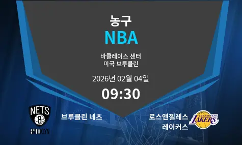 2026년 2월 4일 오전 9시 30분, 바클레이스 센터에서 브루클린 네츠와 로스앤젤레스 레이커스가 맞붙습니다. 양 팀은 최근 상승세를 타고 있으며, 이번 경기는 치열한 승부가 예상됩니다.