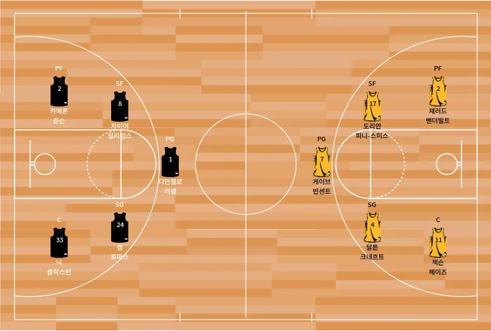 - 디안젤로 러셀 – 뛰어난 플레이메이킹과 득점 능력을 갖춘 가드.