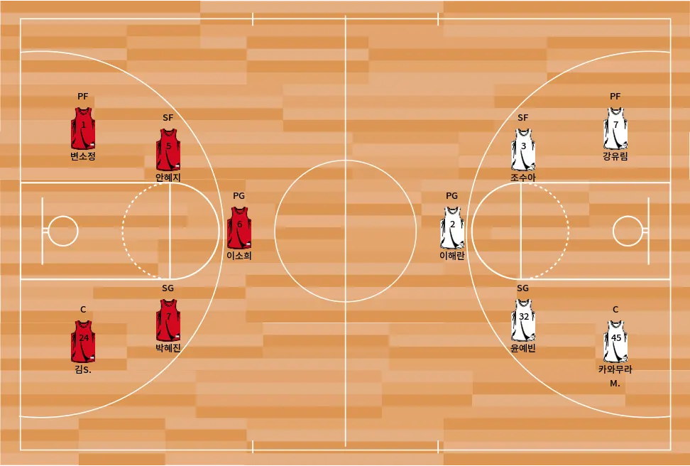 - 박다원은 팀의 공격 패턴을 이끄는 중요한 포인트 가드입니다.