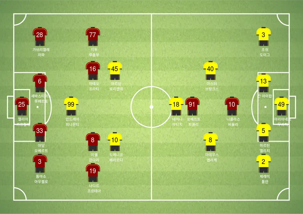 - 안드레아 벨리: 측면 돌파와 정확한 크로스로 공격 기회를 창출