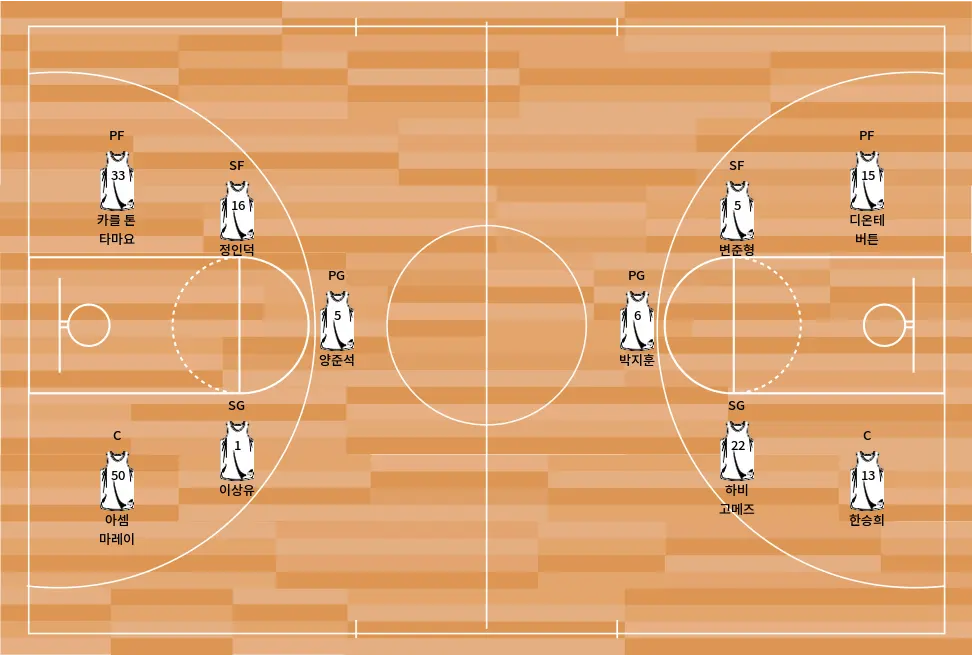 - 디온테 버튼 (파워포워드) – 다득점 능력과 멀티 포지션 수비를 겸비한 핵심 선수.