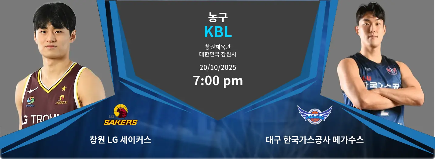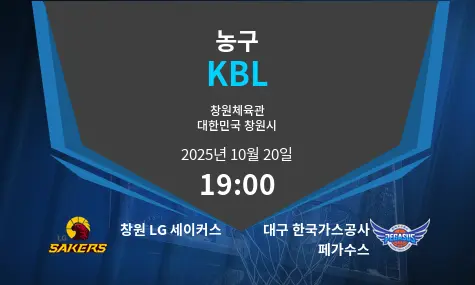 2025년 10월 20일 창원체육관에서 열리는 이번 경기는 창원 LG 세이커스와 대구 한국가스공사 페가수스의 맞대결이다. 세이커스는 시즌 초반 3승 2패로 상위권 경쟁을 이어가고 있으며, 조직적인 수비와 안정적인 득점 밸런스를 유지하고 있다. 반면 페가수스는 5연패로 부진에 빠져 있으며, 공격과 수비 양면에서의 집중력이 떨어지는 모습을 보이고 있다. 이번 경기는 상승세를 노리는 세이커스와 반전을 노리는 페가수스 간의 중요한 승부가 될 전망이다.