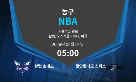 샬럿 호네츠와 샌안토니오 스퍼스 간의 매치가 스펙트럼 센터에서 열릴 예정입니다. 이 경기는 2026년 2월 1일, 오전 5시에 시작됩니다.