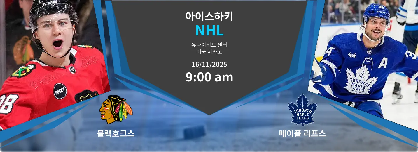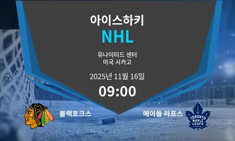 시카고 블랙호크스가 2025년 11월 16일 유나이티드 센터에서 토론토 메이플 리프스를 맞이합니다. 블랙호크스는 홈에서 강력한 수비와 골텐딩을 활용하고자 합니다. 메이플 리프스는 4연패와 주요 부상자 명단으로 인해 어려움을 겪고 있습니다. 이번 NHL 경기는 시카고의 견고한 수비 조직력과 현재 전력이 약화된 토론토의 강력한 공격 간의 충돌입니다.