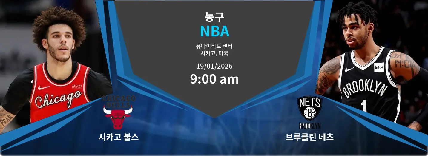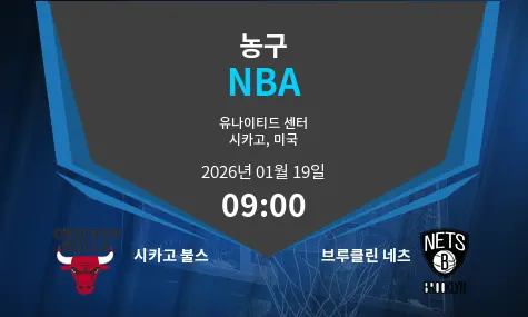 시카고 불스와 브루클린 네츠의 경기 분석입니다. 이번 매치는 2026년 1월 19일 오전 09:00에 유나이티드 센터에서 열립니다.