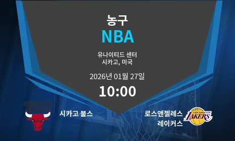 시카고 불스가 로스앤젤레스 레이커스와 2026년 1월 27일에 유나이티드 센터에서 맞붙습니다. 경기 시작 시간은 10시입니다. 양 팀은 저마다의 강력한 선수들로 구성되어 있으며, 매 경기마다 스릴 넘치는 승부를 펼치고 있습니다. 이번 대결에서 어떤 전략이 승리를 가져올지 주목됩니다.