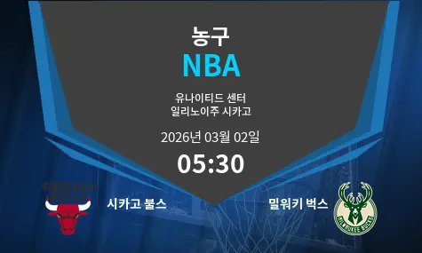 2026년 3월 2일, 시카고 불스와 밀워키 벅스의 경기가 시카고의 United Center에서 열립니다. 경기는 오전 5시 30분에 시작될 예정입니다. 이 두 팀은 NBA에서 치열한 경쟁을 펼치고 있으며, 각각의 팀은 자신들의 플레이오프 자리 확보를 위해 승리가 절실합니다. 두 팀 모두 강력한 전력을 보유하고 있으며, 경기 결과는 양 팀의 경기력에 달려 있습니다.