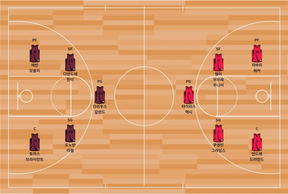 - 켈리 우브레 주니어: 필요한 보조 득점과 운동 능력이 뛰어난 윙 수비를 제공합니다. 그의 에너지는 팀 공격에 매우 중요합니다.