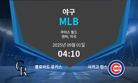 콜로라도 로키스와 시카고 컵스가 2025년 9월 1일 덴버의 쿠어스 필드에서 맞붙습니다. 로키스는 투수진의 기복이 크고 안정적인 경기 운영이 부족한 반면, 컵스는 파워와 균형 잡힌 타선을 앞세워 안정적인 시즌을 이어가고 있습니다. 이번 경기는 순위에서 서로 다른 방향을 걷고 있는 두 팀의 대결입니다.