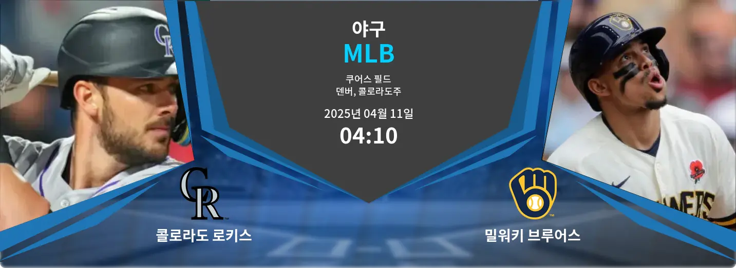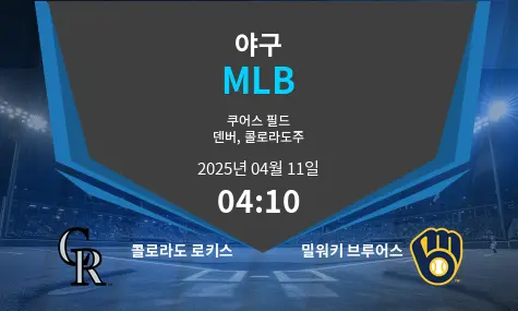 콜로라도 로키스는 4월 11일, 미국 콜로라도주 덴버에 위치한 쿠어스 필드에서 밀워키 브루어스를 홈으로 맞이합니다. 한국 시간 기준으로 경기는 오전 4시 10분에 시작됩니다. 이번 경기는 홈에서 반전을 노리는 로키스와 부상자 속에서도 꾸준한 전력을 유지하고 있는 브루어스의 맞대결로, 쿠어스 필드의 특성상 양 팀의 활발한 타격전이 기대됩니다.