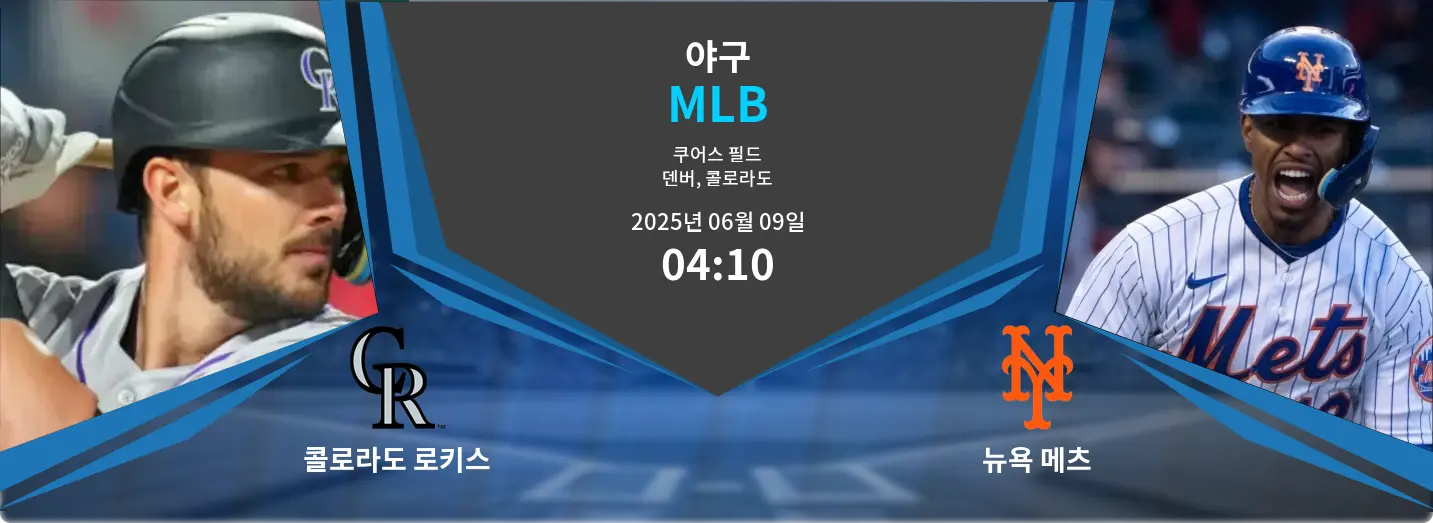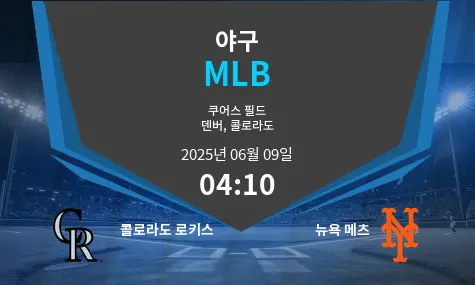 6월 9일 오전 4시 10분(KST), 콜로라도주 덴버의 쿠어스 필드 에서 콜로라도 로키스가 뉴욕 메츠를 상대로 내셔널리그 경기를 치릅니다. 고지대 특성상 타자에게 유리한 환경으로 잘 알려진 이 구장에서 두 팀은 부상자 명단 속에서도 중요한 중반 시즌 흐름을 결정짓는 맞대결을 펼칠 예정입니다.