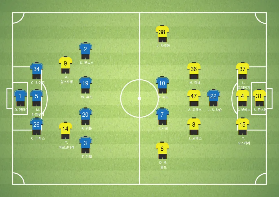 - 윌 휴즈: 중원에서 경기를 조율하는 미드필더로, 뛰어난 패스 능력과 경기 판단력을 갖추고 있습니다.