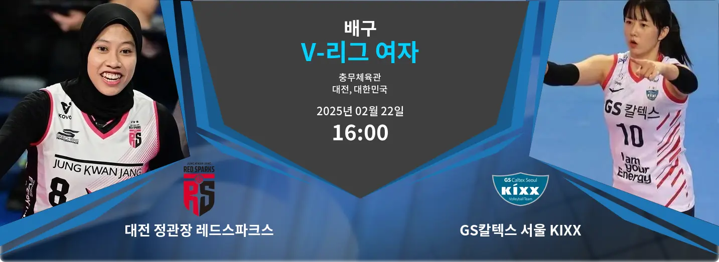 V-리그 여자부에서 기대를 모으는 대전 정관장 레드 스파크스와 GS 칼텍스 서울 KIXX의 경기가 2월 22일 16:00 KST에 대전 충무체육관에서 열릴 예정입니다. 최근 경기력에서는 GS 칼텍스가 다소 우위를 보이고 있지만, 레드 스파크스는 홈경기 이점을 가지고 있어 매우 치열한 승부가 예상됩니다.