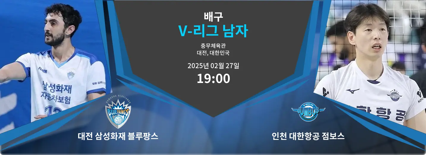 삼성 블루팡스와 대한항공 점보스의 맞대결이 2월 27일, 대한민국 대전 충무체육관에서 한국 시간 19:00 (KST)에 열릴 예정입니다. 이번 경기는 삼성 블루팡스가 플레이오프 순위를 끌어올릴 기회를 노리는 중요한 경기이며, 대한항공 점보스는 리그 선두를 유지하기 위해 반드시 승리가 필요한 경기입니다.