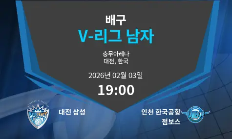 대전 삼성과 인천 한국공항 점보스의 경기는 대전 중구에 위치한 충무체육관에서 2026년 2월 3일 19:00에 열립니다. 두 팀은 V-리그에서 각각 강한 경쟁력을 보여주고 있으며, 이번 경기도 치열한 접전이 예상됩니다.