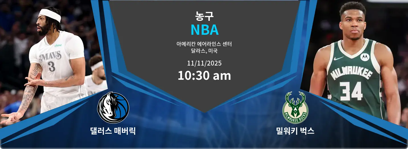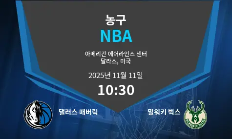 댈러스 매버릭스는 미국 텍사스 달라스의 아메리칸 에어라인스 센터에서 밀워키 벅스를 상대한다. 매버릭스는 루카 돈치치 중심의 공격 전개와 외곽 슛을 활용해 경기 주도권을 잡으려 하며, 빠른 템포의 전환 공격으로 상대 수비를 흔들 계획이다. 반면 벅스는 야니스 아데토쿤보와 주전 멤버들의 균형 잡힌 공격과 수비를 기반으로 안정적인 경기 운영을 보여준다. 이번 경기는 양 팀의 공격과 수비 밸런스가 맞붙는 치열한 경기 양상이 예상된다.