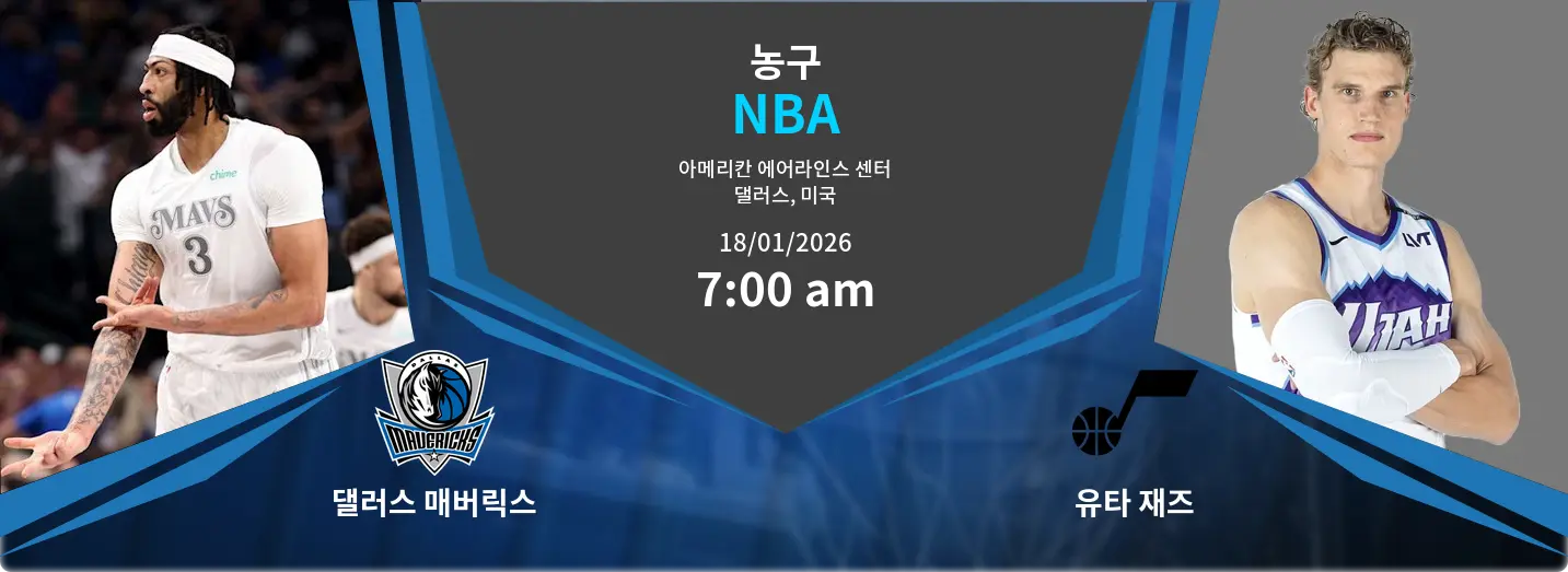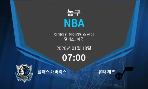 댈러스 매버릭스와 유타 재즈의 경기는 2026년 1월 18일 오전 07:00에 American Airlines Center에서 열릴 예정입니다. 두 팀 모두 강력한 전력을 바탕으로 치열한 경기를 펼칠 것입니다.
