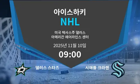 댈러스 스타즈는 미국 텍사스주 댈러스의 아메리칸 에어라인스 센터에서 시애틀 크라켄을 상대로 2025년 11월 10일 정규 시즌 맞대결을 치른다. 스타즈는 홈 팬들의 응원 속에 최근 상승세를 이어가려 하며, 탄탄한 수비 조직력과 빠른 역습을 무기로 삼고 있다. 반면 크라켄은 원정에서의 안정적인 경기 운영과 조직적인 수비를 기반으로 실점을 최소화하며 승점을 노릴 계획이다. 두 팀 모두 경기 초반부터 신중한 전개를 펼치며 수비적인 접근을 보일 가능성이 높다.
