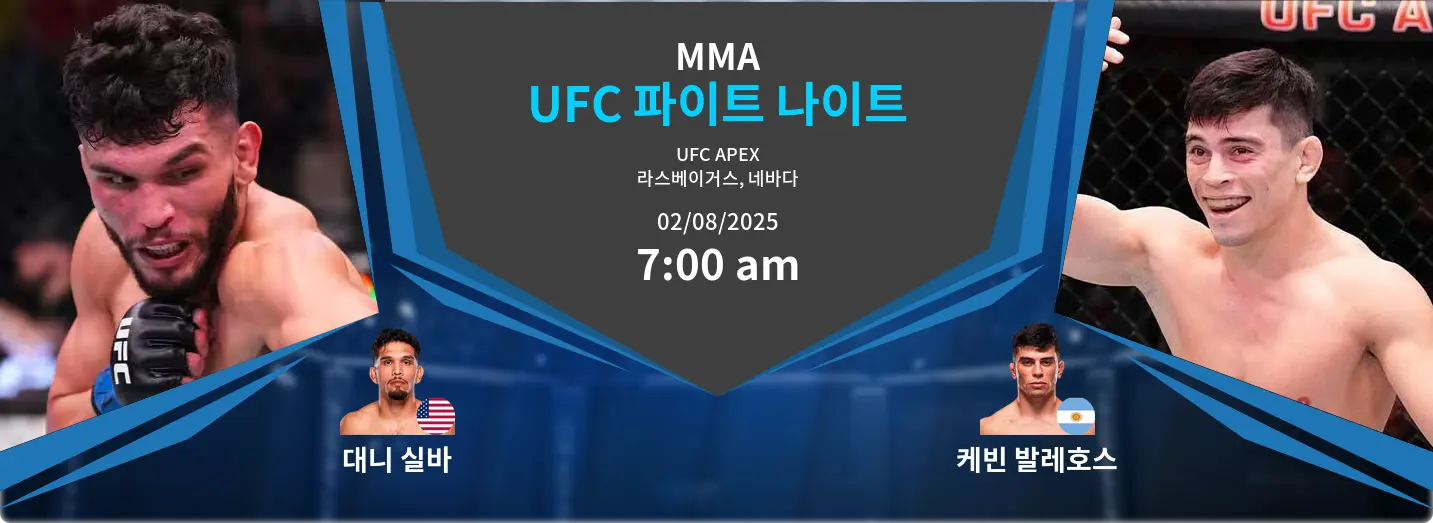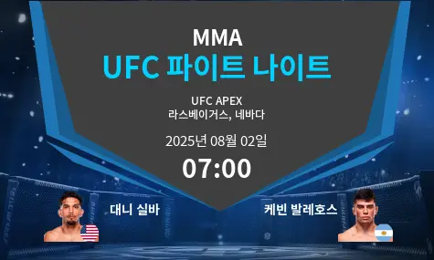 페더급 기대주 대니 실바와 케빈 발레호스는 2025년 8월 3일 미국 네바다주 라스베이거스의 UFC APEX에서 맞붙습니다. 두 선수 모두 4연승을 달리며 상승세를 타고 있으며, 각각의 스타일로 강한 인상을 남기고 있습니다. 실바는 절제된 복싱 기반의 운영형 파이터이고, 발레호스는 폭발적인 타격력과 피니시 본능을 갖춘 선수입니다. 이 경기는 테크니컬한 타격 교환과 긴장감 넘치는 경기 흐름이 기대되는 매치업입니다.