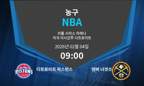2026년 2월 4일 09:00에 멕시코시티의 아레나 시우다드에서 디트로이트 피스턴스와 덴버 너겟츠의 중요한 경기가 열릴 예정입니다. 두 팀은 최근 대결에서 상위권 자리를 다투고 있으며, 이번 경기는 플레이오프 자리 경쟁에 중요한 역할을 할 것입니다.