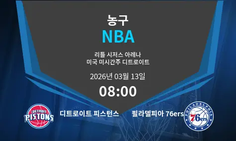 디트로이트 피스턴스와 필라델피아 76ers의 매치가 2026년 3월 13일, 멕시코시티의 아레나 시우다드 데 멕시코에서 08:00에 열립니다. 매치업은 다양한 요소에서 두 팀의 경쟁력을 전망하게 하며, 뛰어난 팀워크와 스타 플레이어들이 경기의 결과를 좌우할 것입니다.