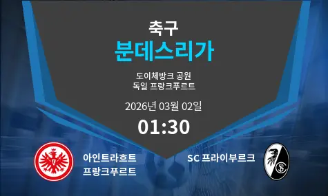 아인트라흐트 프랑크푸르트와 SC 프라이부르크의 경기는 Deutsche Bank Park에서 열릴 예정입니다. 날짜는 2026년 3월 2일이며, 경기 시작 시간은 01:30입니다. 양 팀은 최근 좋은 성적을 거두고 있으며, 뛰어난 경기력을 보여주고 있습니다. 이번 경기에서는 양 팀의 전술 접근 방식이 승부에 중요한 영향을 미칠 것으로 보입니다.